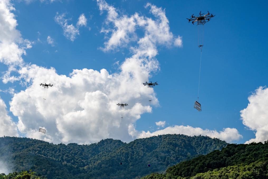 针对大分量运输难题,团队研发出“四机联吊”手艺,颠末数百次试验调试,霸占多机协同节制、载荷平衡分派等环节手艺。目前,“四机联吊”单次运输分量已冲破500公斤,创制了单日飞跃高差220米、运输曲线米的雨林运输记载。