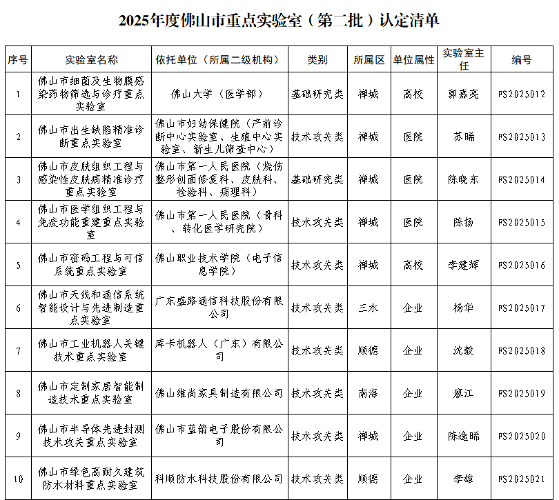按照《佛山市研发机构扶植办理法子》(佛科〔2023〕34号)等文件要求,佛山市科学手艺局正式发布最新一批认定的佛山市细菌及生物膜传染药物筛拔取诊疗沉点尝试室等19家佛山市沉点尝试室。
